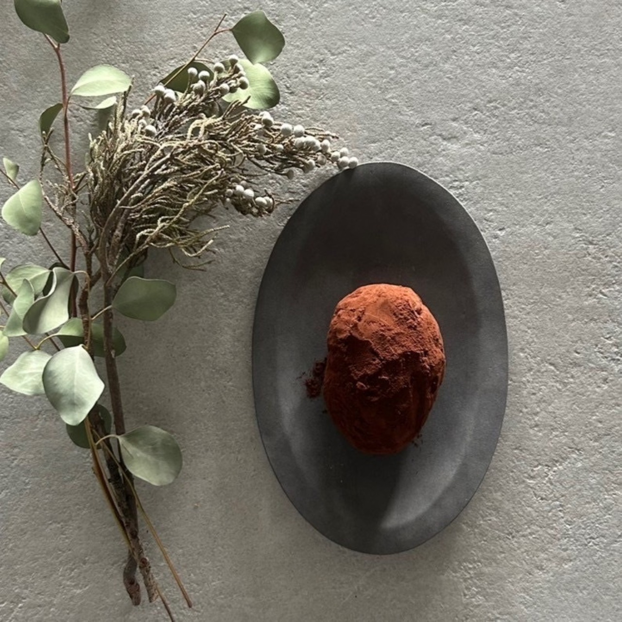 Chokoladen Stollenに、マジパンを包みこみ、カカオパウダーをまといました。
